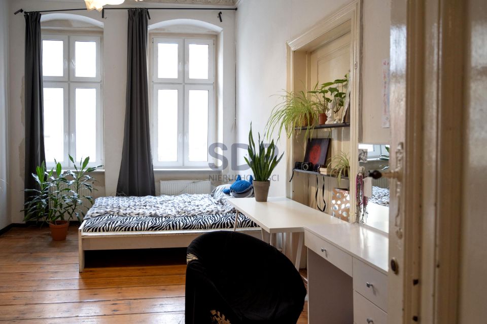 Mieszkanie dla osoby poszukującej wyjątkowej nieruchomości o zabytkowym charakterze (zachowane sztukaterie, deski, możliwe odsłonięcie przejść amfiladowych).